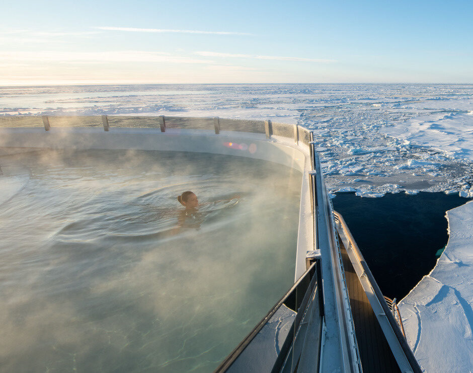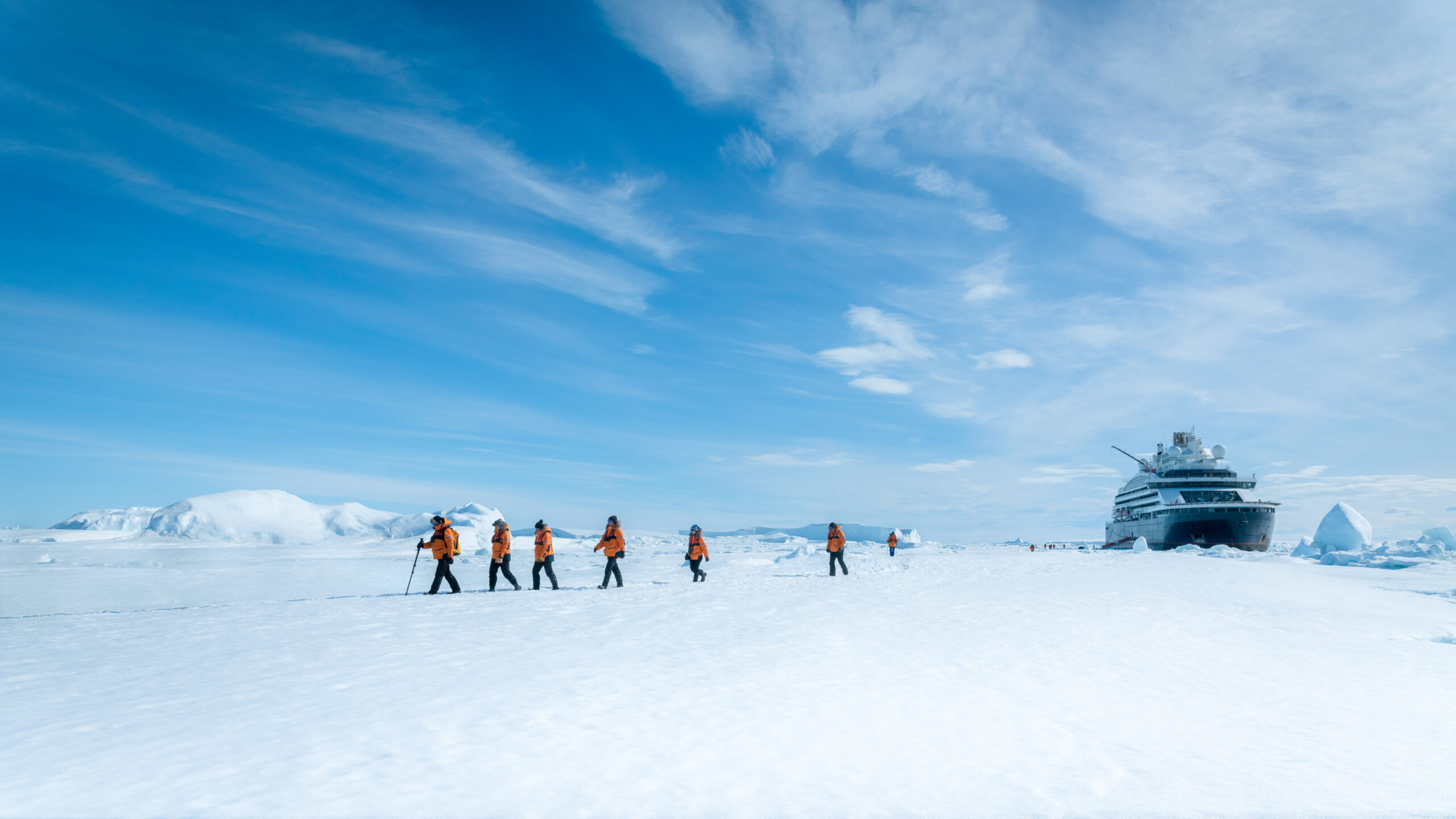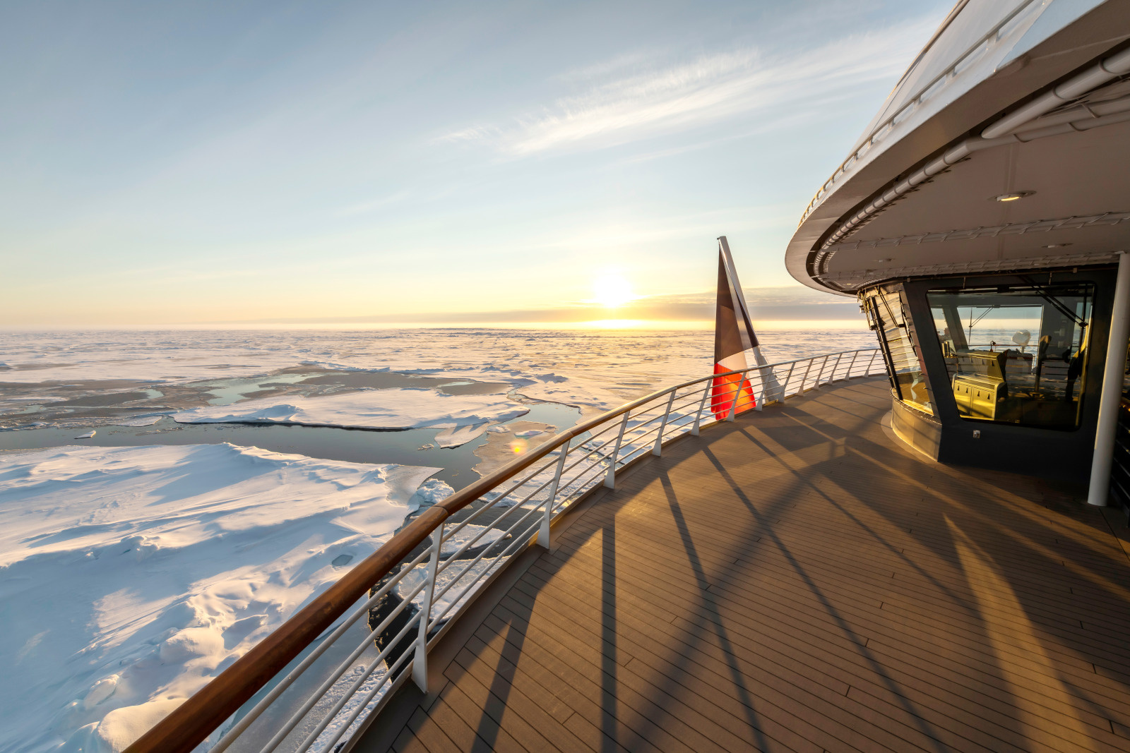 極地観測船と同レベルの砕氷能力を備え、厚い氷に阻まれてこれまで訪れることが困難であった、地球上で最も隔絶された真の極地を目指す旅を実現します。高度な汚水処理システムをはじめとする最新技術を導入し、環境への負荷を最小限に抑制。さらに、極地の環境や生物多様性に関する観測・研究設備を備え、科学者による調査・研究の場としても提供されています。