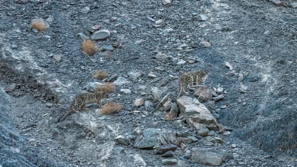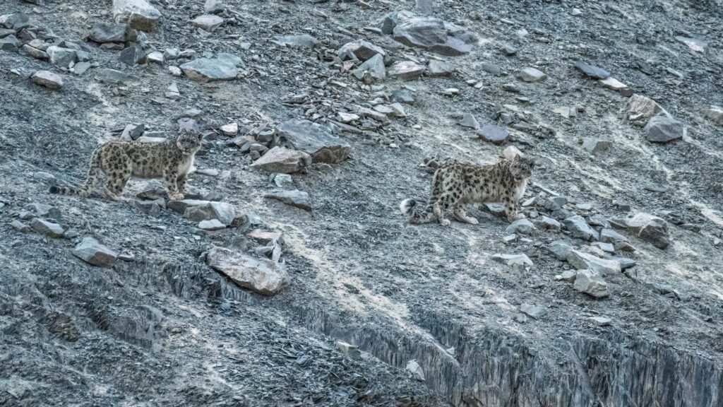 ユキヒョウは、広大な山岳地帯に単独で生息し、人目を避けるように行動するため、発見が極めて困難な動物です。雪や岩に完全に溶け込む保護色に加え、移動範囲も広く、姿を現す時間もごく限られています。一般的なサファリのように「比較的高い確率で見られる」動物とは異なり、ユキヒョウは数日間かけて探索しても出会えないことがある存在です。それでも、ラダックは世界でも有数の観察確率を誇るエリアであり、専門ガイドやスポッターのネットワークを活かすことで、遭遇の可能性を最大限に高めます。そして、もしその姿を自分の目で捉えたときはそれは単なる“動物を見た体験”ではなく、人生に残る特別な瞬間となります。