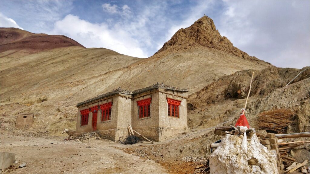 ラダック西部ウレイ村に位置する、ユキヒョウ観察の拠点となる山岳ロッジ。
