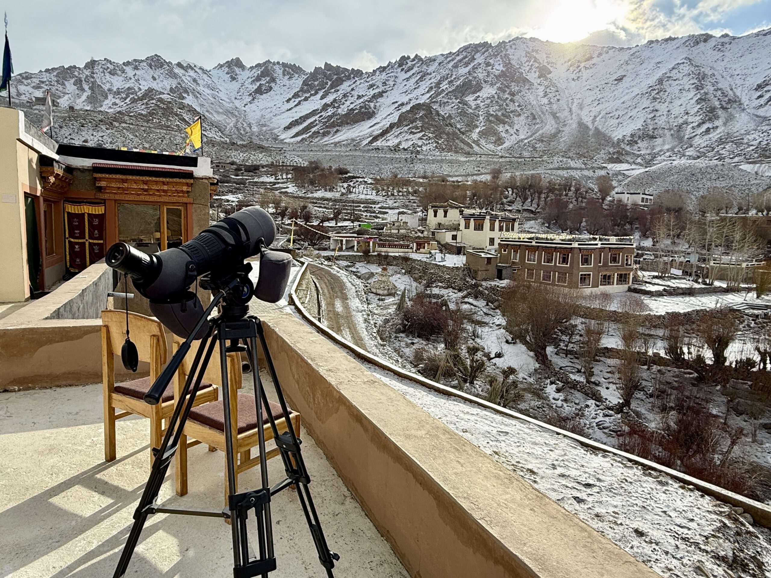 ラダック滞在中は、経験豊富な英語ナチュラリストガイドと、ロッジ専属のスポッターが同行。高性能スコープや双眼鏡も含まれ、本格的な野生動物観察をお楽しみいただけます。